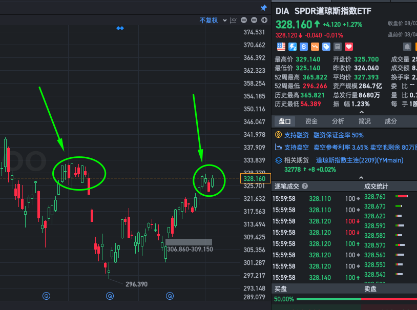 DIA 股价上涨,资金流出,特大单流出为主