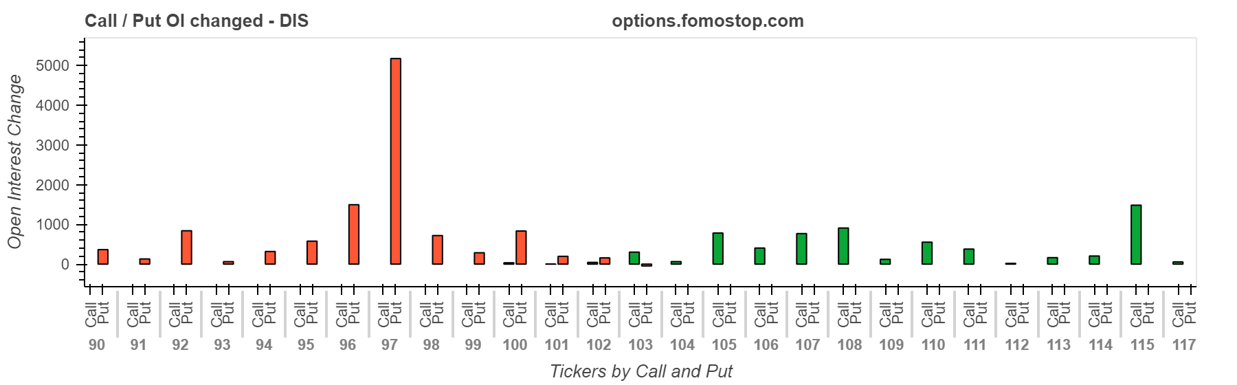 DIS可能会跌破97了,按照收盘前的期权分布来看