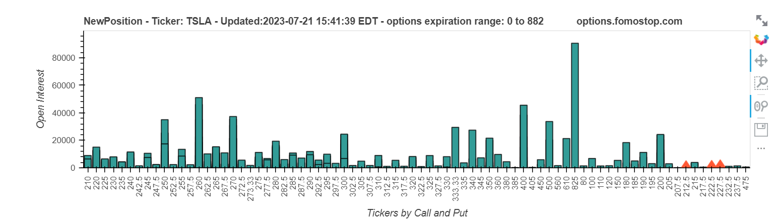 久违的小结回来了,前段时间因为网站搬迁所以暂停了一下小结和盘前,今天借着周五大伙吃肉的日子继续我们的征程。首先昨天的特斯拉财报是正个市场下滑的诱因,群友说的是260以上的进场很大一部分是因为FOMO进去的。所以今天特斯拉的确守住了260,到底要不要现在冲进去?期权的数据显示的确有这样一部分人,然后并没有大量出现,标记的是今天新开仓的。