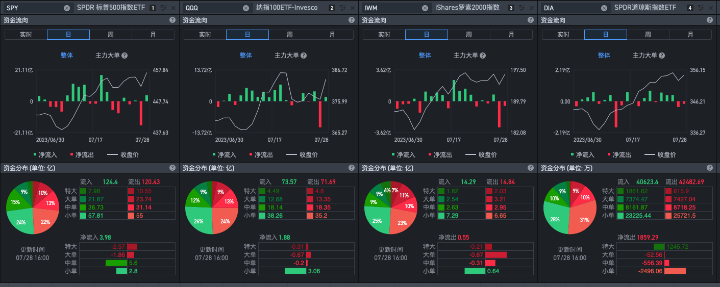 如此强劲的修复只换来了SPY和QQQ的资金流入,IWM和DIA的资金依然是属于流出,2比2的赛果在资金流层面表现出来的只能说是还在角逐,未分胜负。