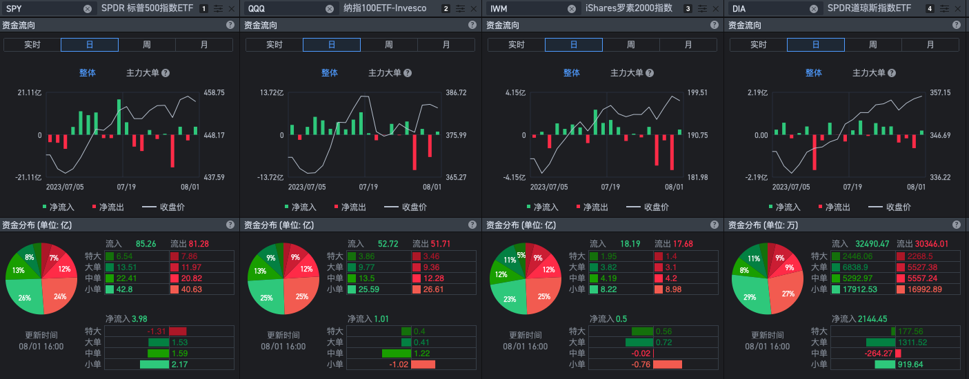 今天的资金流表现为轻微流入,盘后流出了美国信用评级从 AAA 下调至 AA +的新闻,稍微觉得市场并未有什么表现,只是盘后稍微跌了点点,也可以是反应迟钝,明天看数据变化再作定段