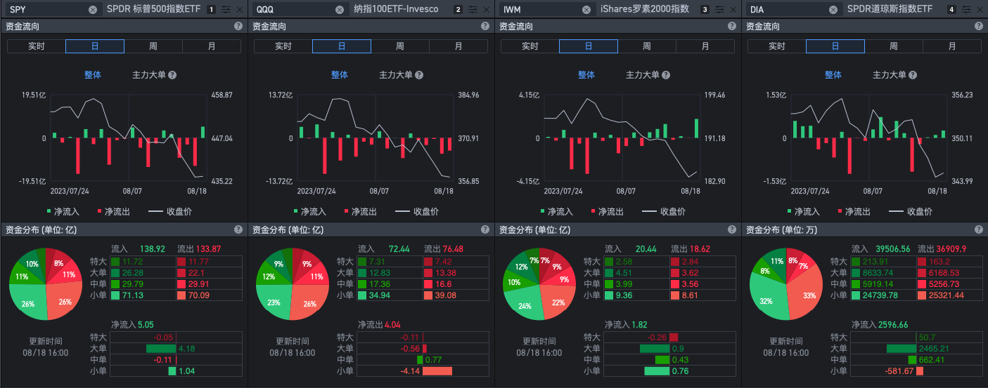 喜忧参半的资金流,QQQ还在流血,其余最明显的流入就是IWM,记得我上周说过IWM过度收到关注个人觉得并不是真正的利好多方了。