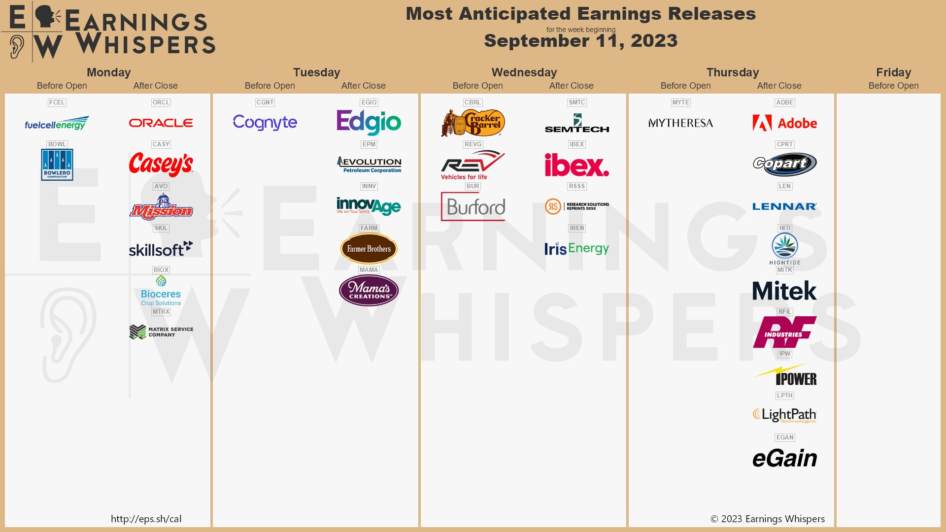 最后是本周财报: