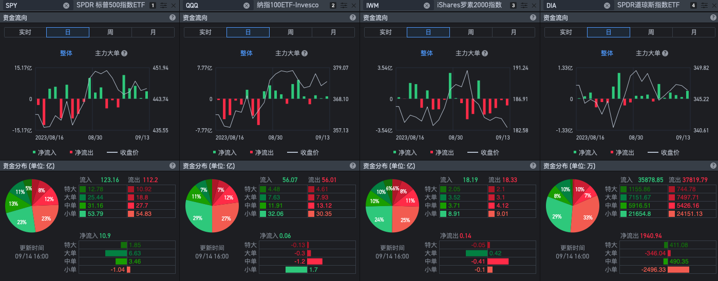 资金流继续呈现流入姿态,IWM资金继续往其余大盘转移。