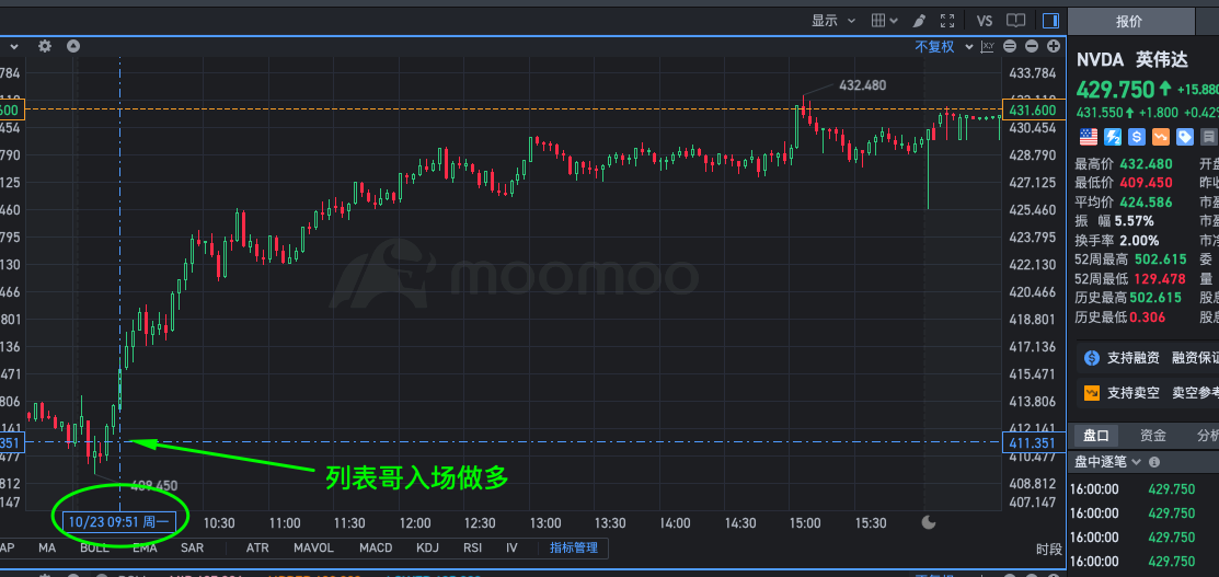 精彩而迷惑的消息面,盘前的下插得益于10年期利率突破5%,然而大家都注意到比特币昂首挺胸,开盘之后大盘气势如雄,10年期国债也守不住5%回落到4.8%,这种就是群友上周五讨论的刺破行情。列表哥今天再度入手NVDA,基本是开盘后就看上了,确定趋势后进入,特大的肉,肥美且稳妥。