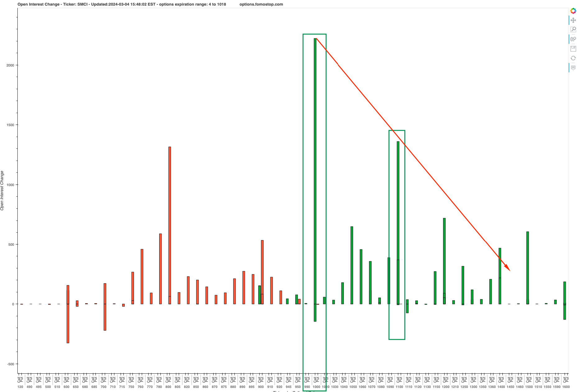 原因:期权的分布持续加仓行权价为1000的Call,当天的股价只在900附近来回,最高927,而且周五当天大盘和各种股都在上推,对于这种沉默,我个人认为该股可能在等待一个Catalyst来助推股价的拉升。
