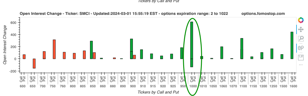 今天默默观察SMCI的数据分布,价格行为并不是什么积极,因为持续增量的1000call已经形成了巨大拉力,但是价格行为只有930附近,而且在其他股票拉升的时候他也不响应,尤其是盘尾的时候我操作了MSTR的末日,那流量也是妥妥的坚定上推,SMCI不涨反跌,所以我觉得SMCI还在等待一个catalyst才会有动作
